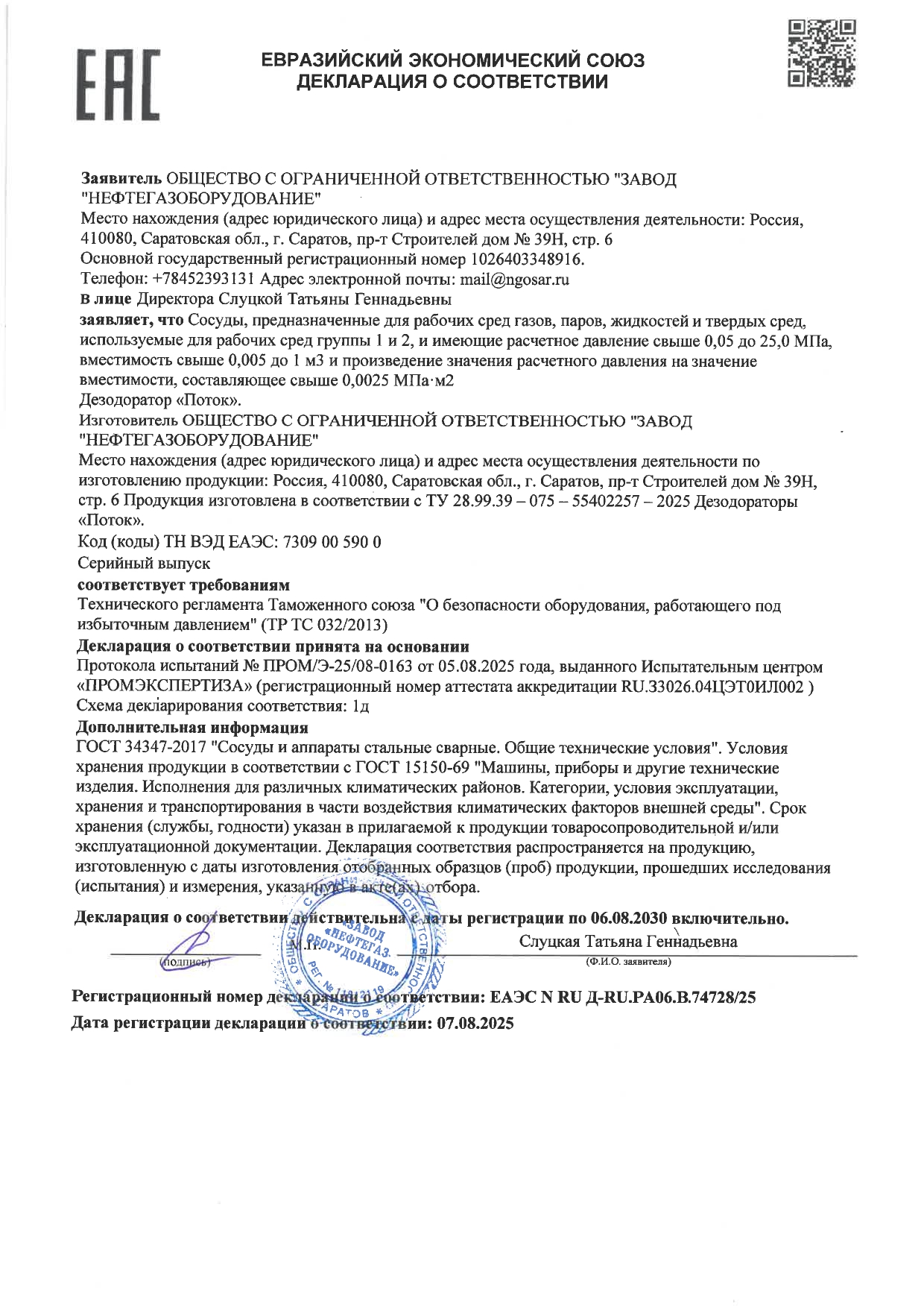 Общество с ограниченной ответственностью «Завод «Нефтегазоборудование» было создано в 2001 году (рег. № 011812119 от 12.07.2001 г).