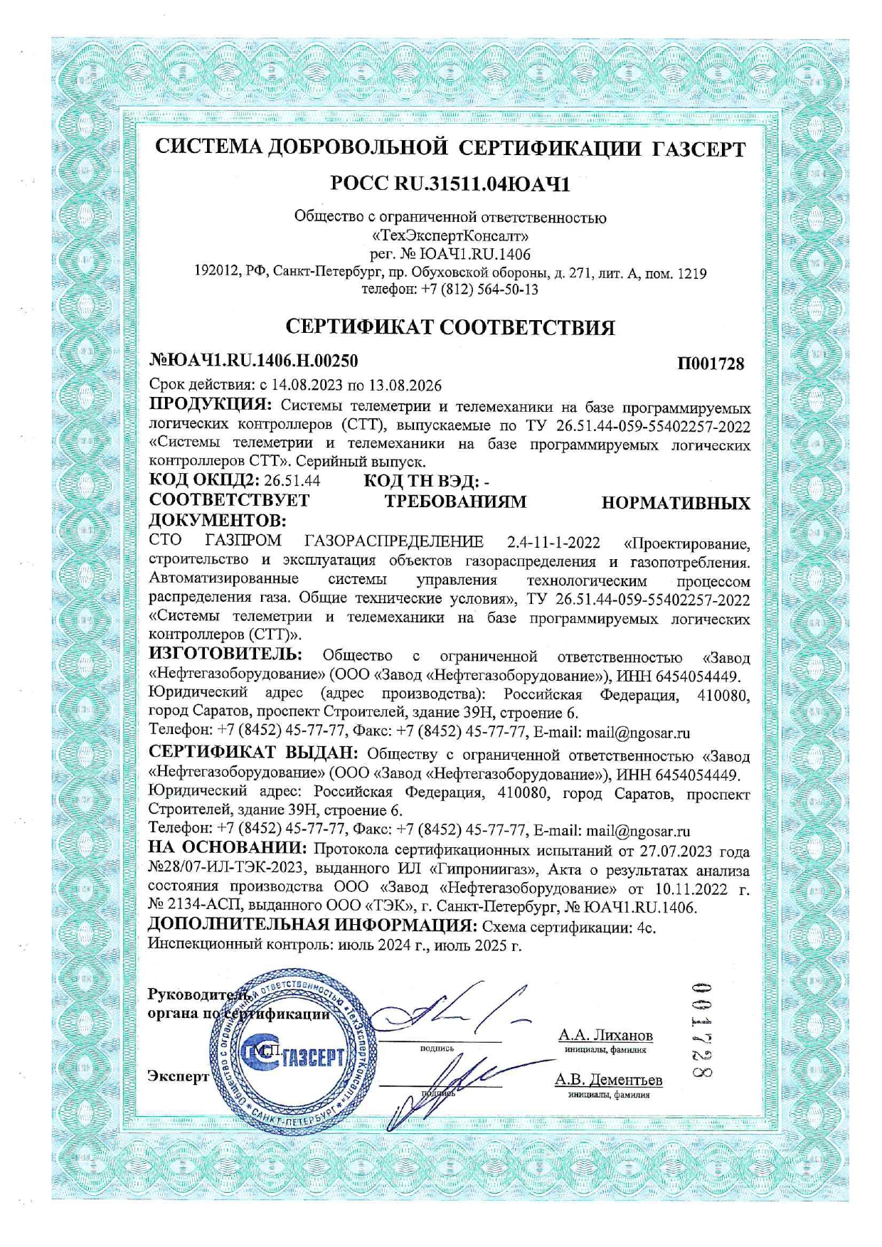 Высокое качество продукции подтверждено приемочными испытаниями, проводимыми на полигонах АО «Оргэнергогаз», а также тестированием в присутствии инспекторов международной компании независимого контроля Мооdу International